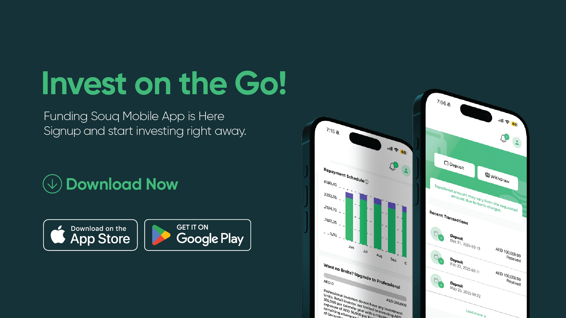 Whether you’re looking to grow your capital through Sharia-compliant investment opportunities or simply want to manage your investments with ease — our new app brings the entire Funding Souq experience to the palm of your hand.